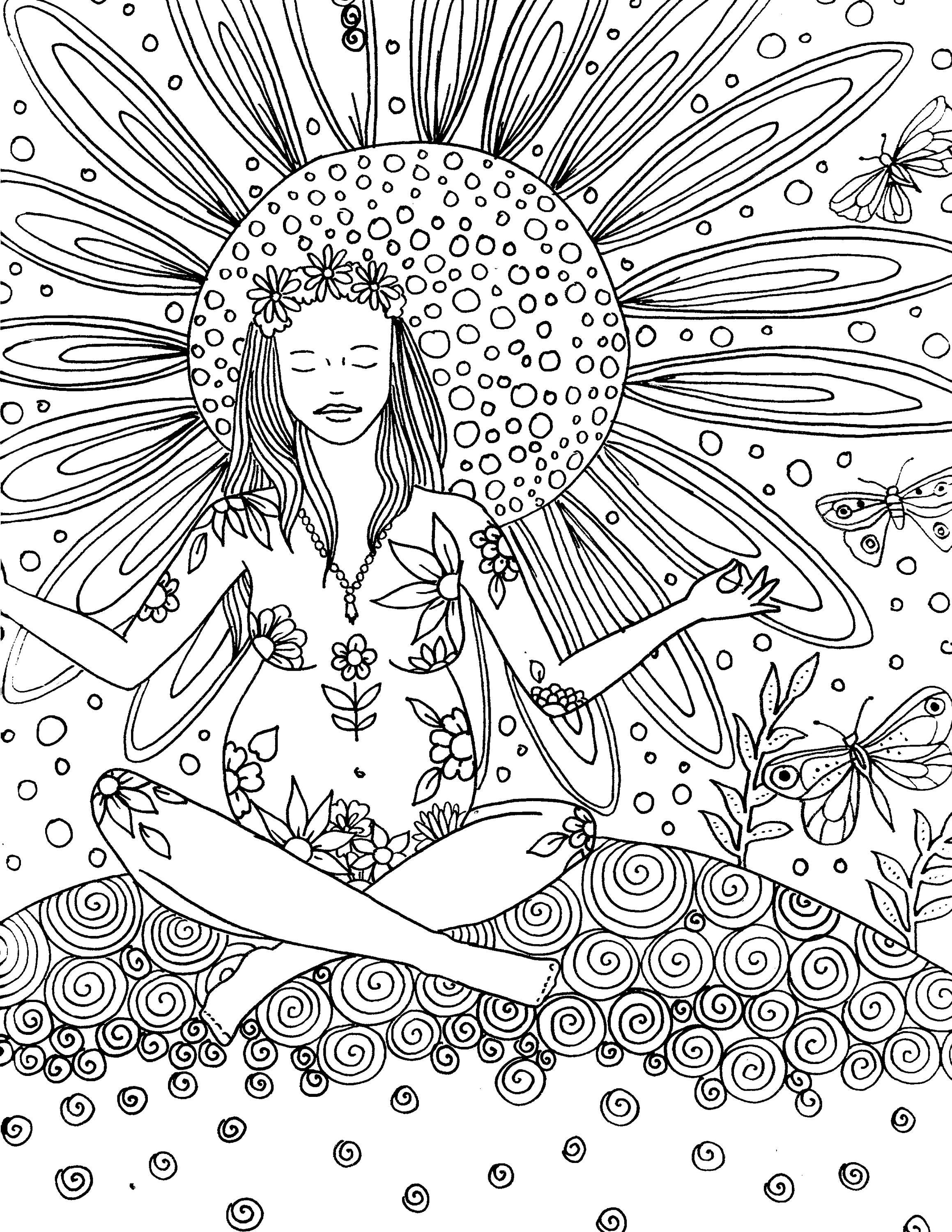 Relax with this fun birth art coloring page featuring a pregnant woman surrounded by flowers.